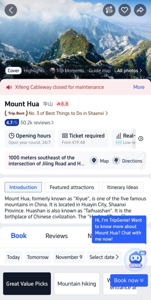 Qui il rimando diretto a Trip.com per acquistare il biglietto combinato di ingresso e bus per il picco Ovest.