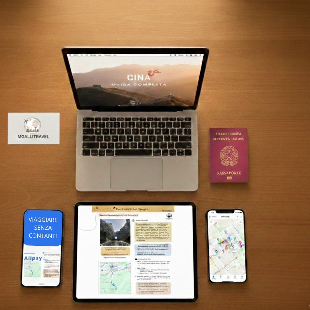 Tutto il Sistema Cina incluso: 299 pagine di risorsa interattiva, Mappa Interattiva Mgallitravel, Guida Alipay e moduli AI Assistant.
