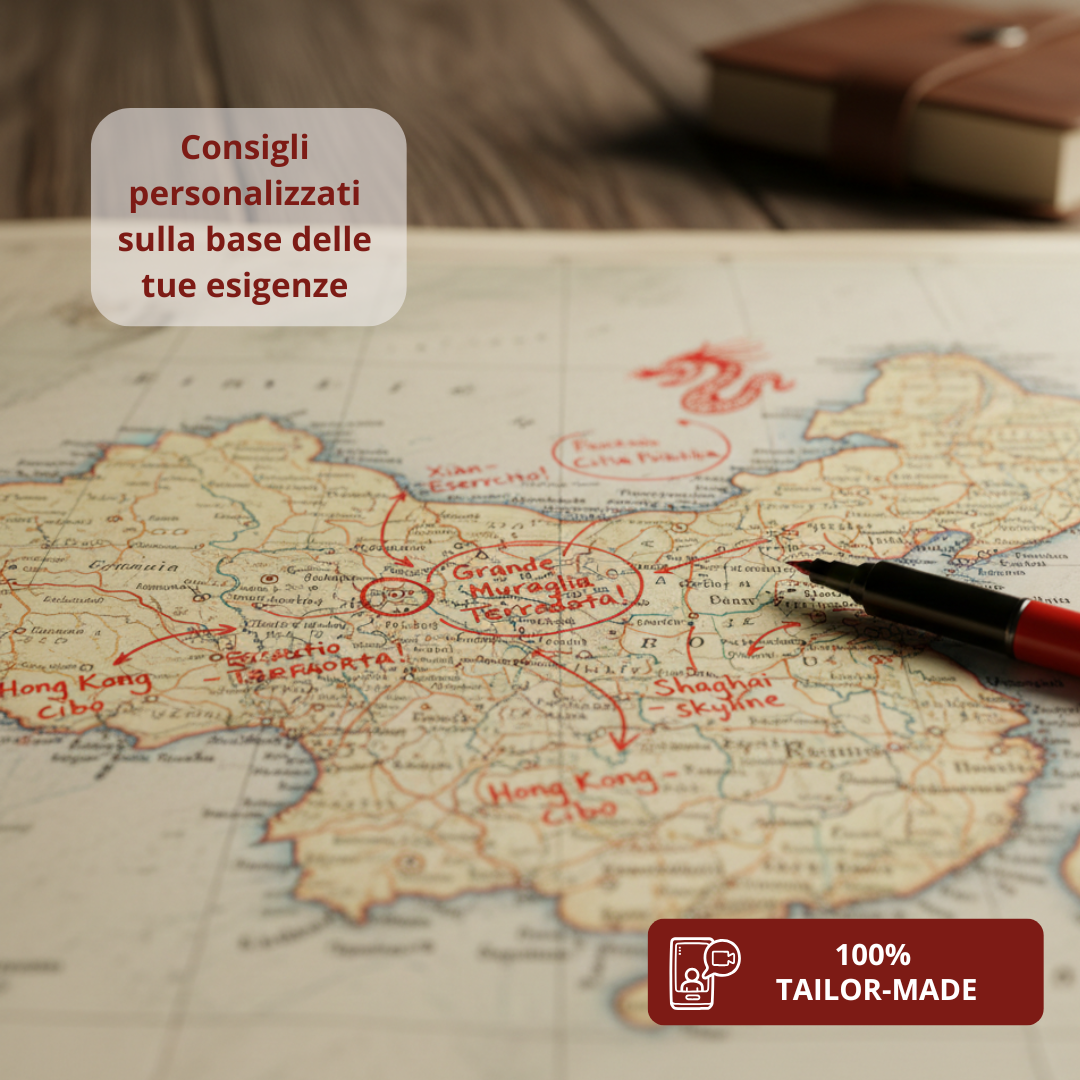 Il Sistema Cina Premium è il massimo livello di assistenza per chi non accetta compromessi. Non avrai solo il Sistema Cina completo (la risorsa digitale interattiva), ma avrai a tua disposizione un esperto dedicato per trasformare ogni tua incertezza in una certezza operativa. È la scelta di chi vuole l’autonomia del viaggio fai-da-te, ma con la rete di sicurezza di un professionista con una profonda conoscenza delle dinamiche locali.Â